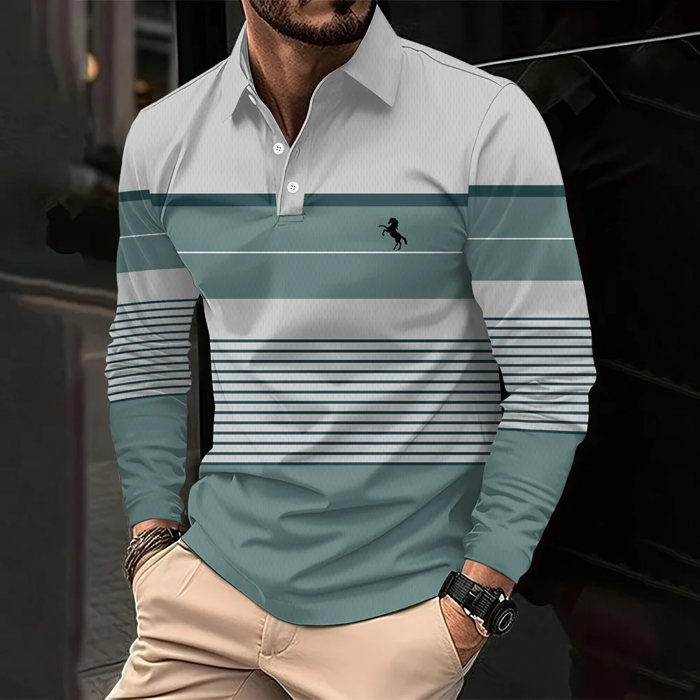 Men's Polo Shirt Horse 3d Printed Men's Button Polo Casual Long Sleeved Fashion Tops Daily Street Men's y2k Clothing Polo Shirts