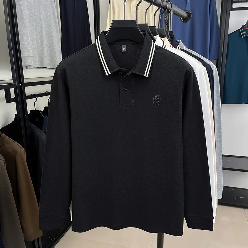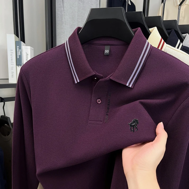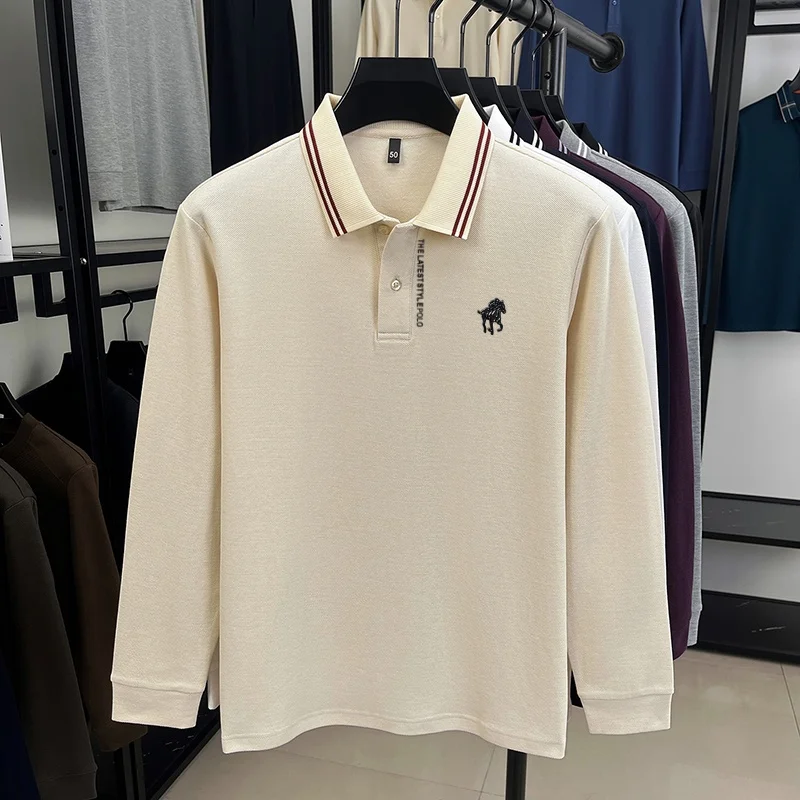 100Cotton Original Quality Men’s Polo Shirt Soft Breathable Horse Print Long Sleeve Autumn Lapel T-Shirt Business Menswear Top