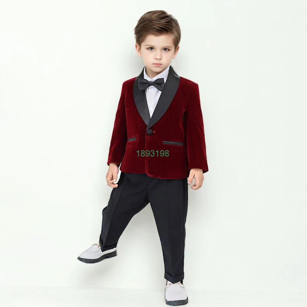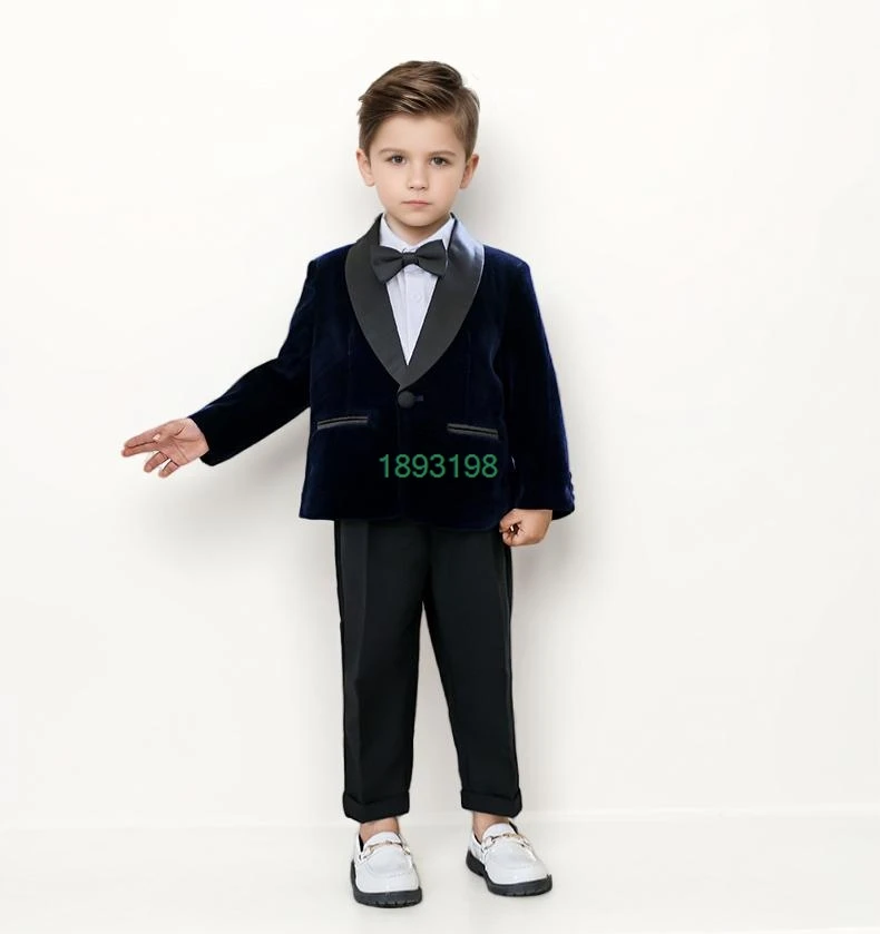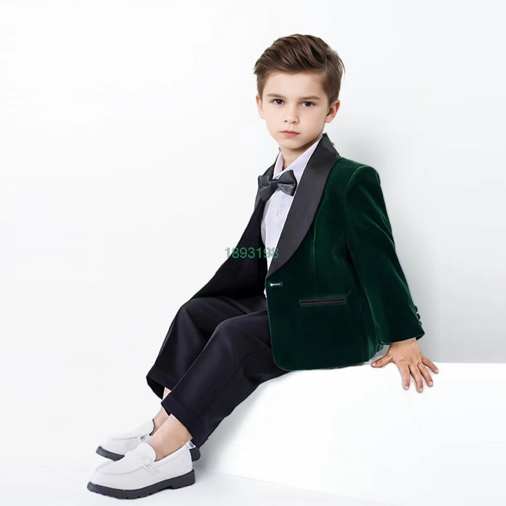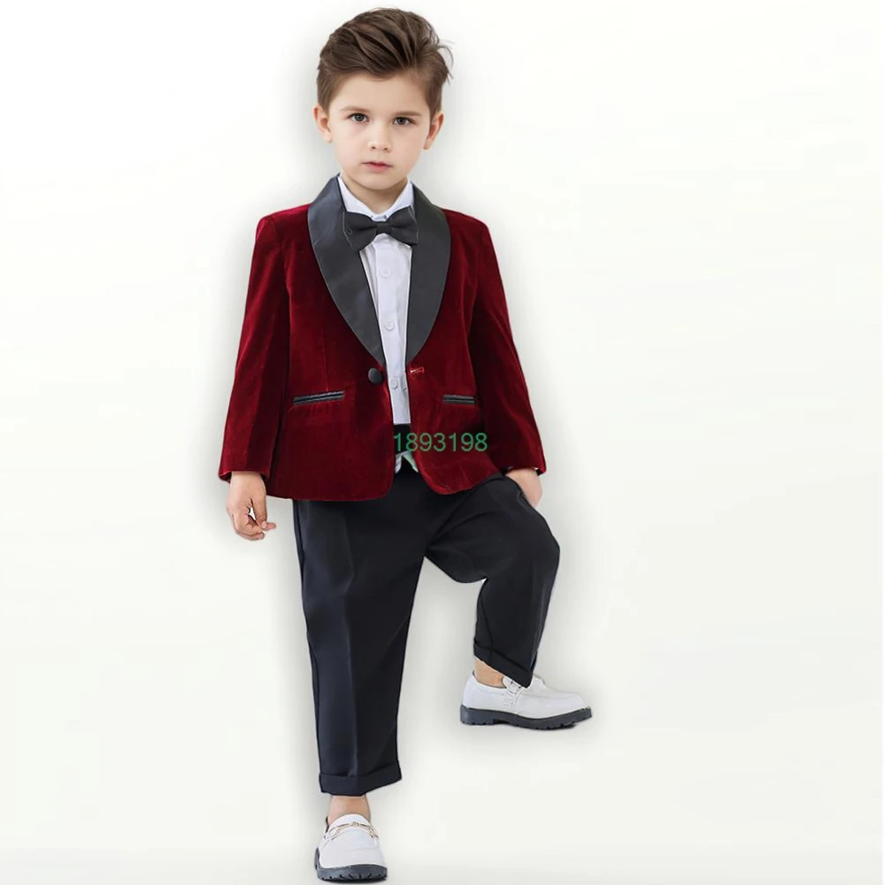 Boys Formal Velvet Suit Set Child Birthday Dress Wedding Party Photography Piano Recital Costume Kids Blazer Pants Bowtie Outfit
