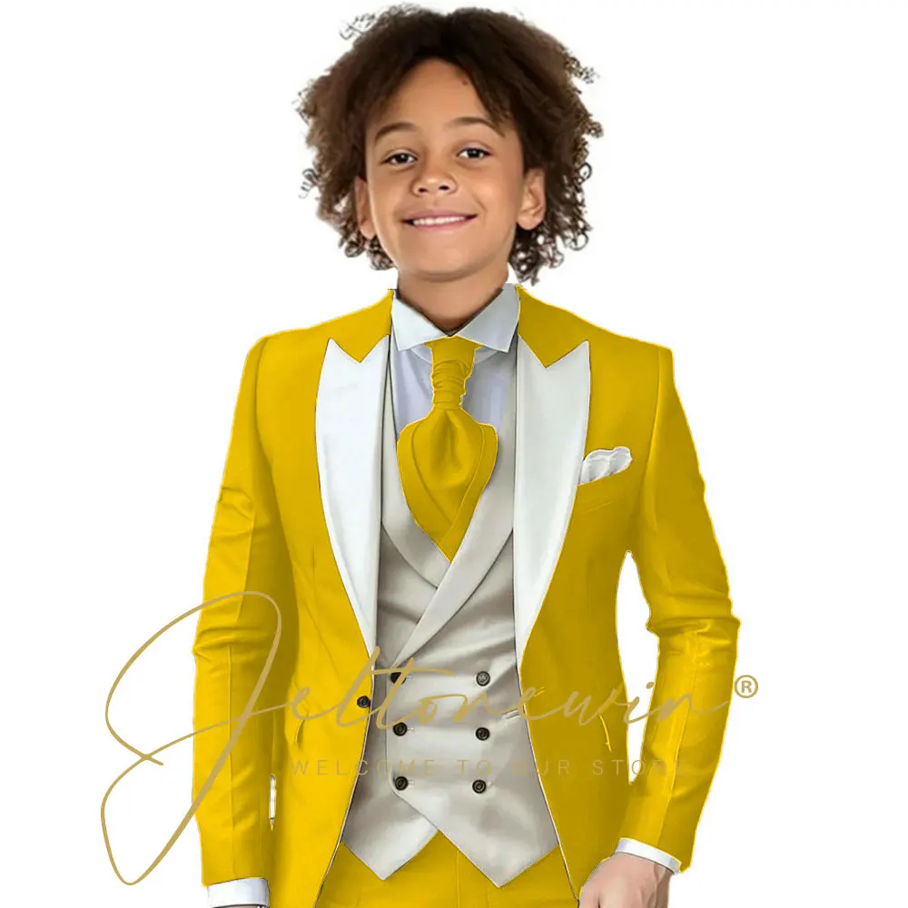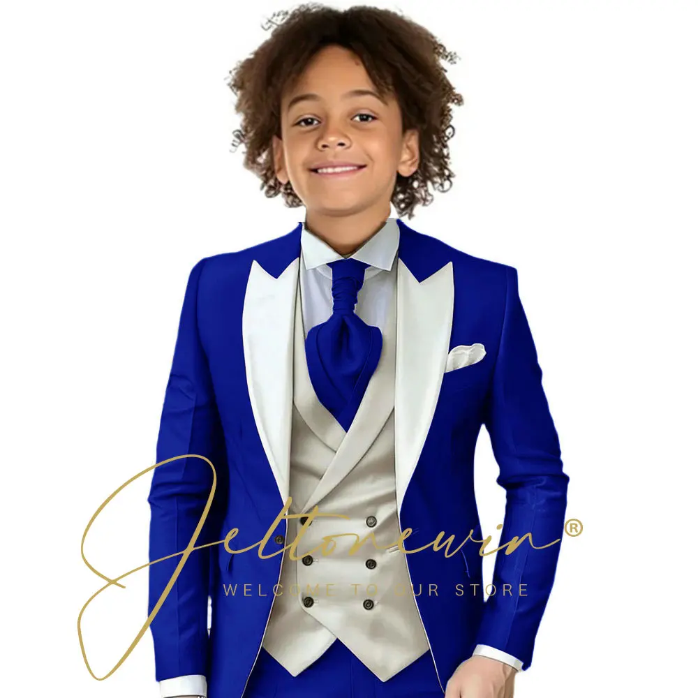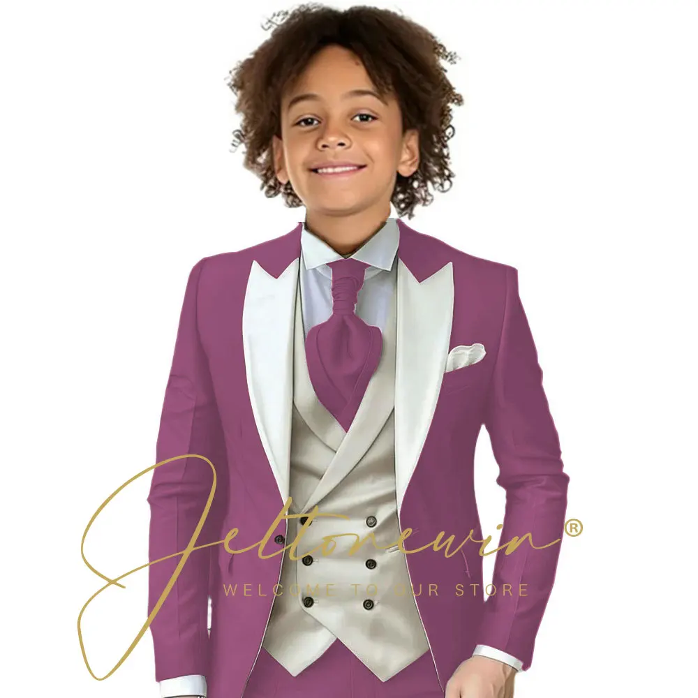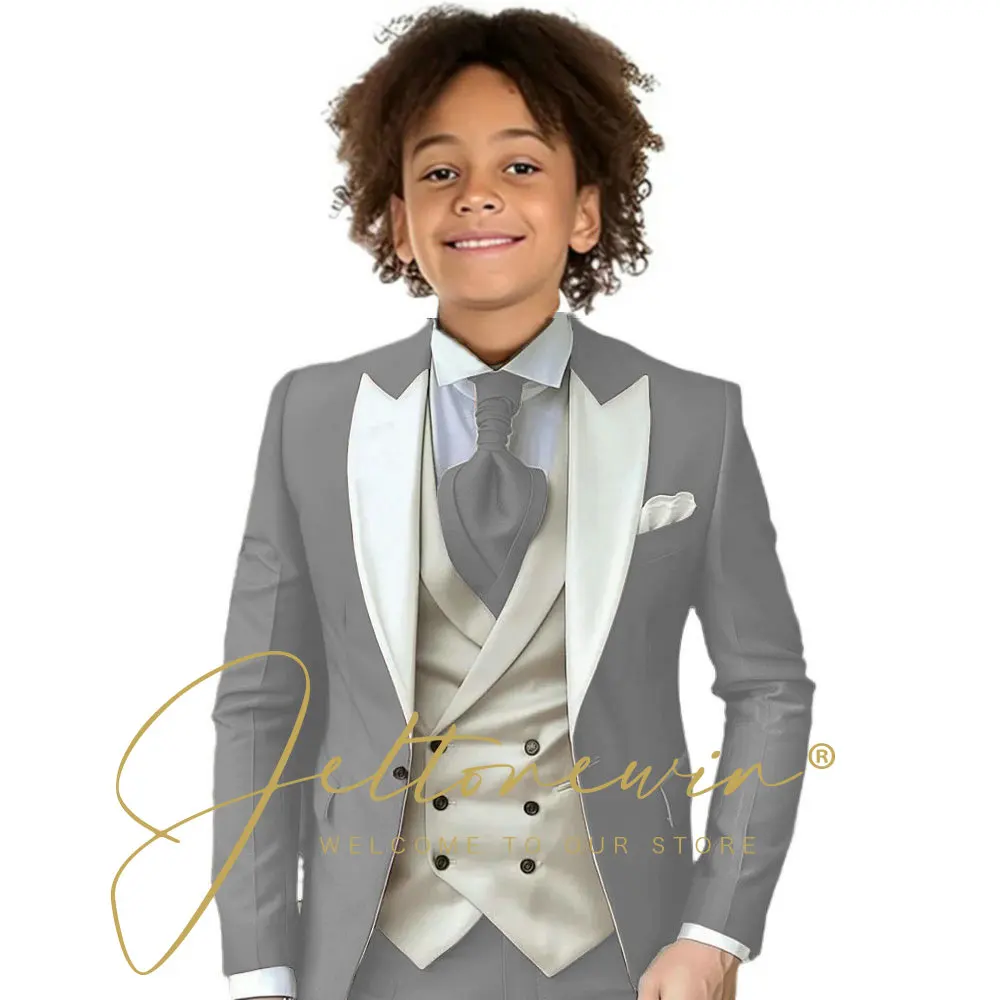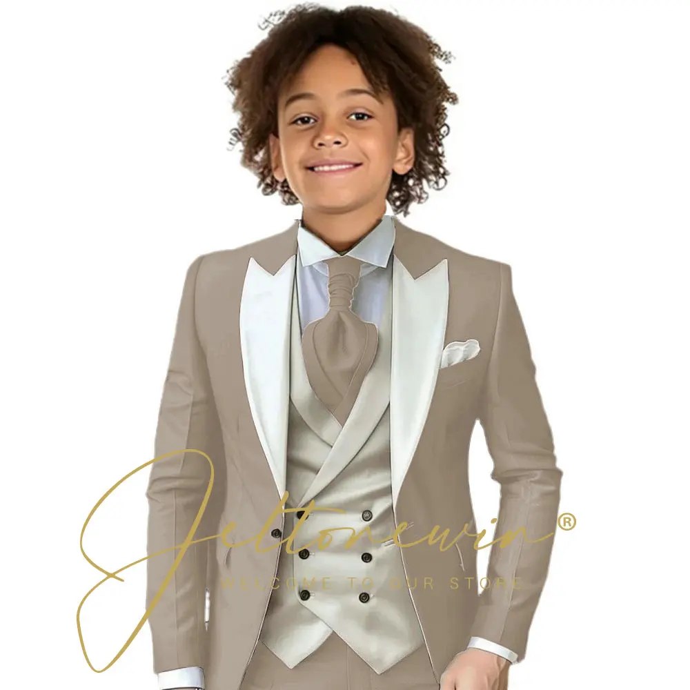 Dark Green Children Formal Wedding Suit Kids Jacket Pants Ivory Vest Photography Dress Flower Boy Birthday Tuxedo Suit