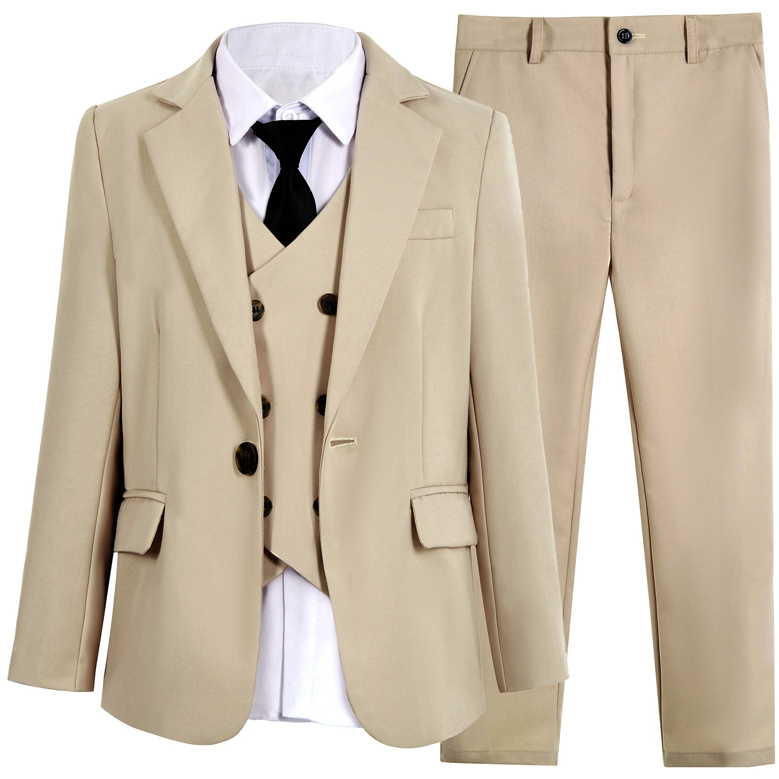DTLumika High Quality Kids Suit Set, 4-Piece Boys Slim Fitting Suit Jacket Pants Vest Bowtie, One Button Communion Kids Suits
