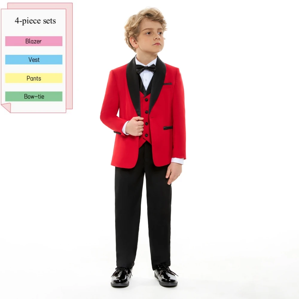 Fast Delivery Boys Slim Fit Suits 4 Pieces Piano Performance Outfit Three Colors Available Comfortable Long Sleeved Suit Set