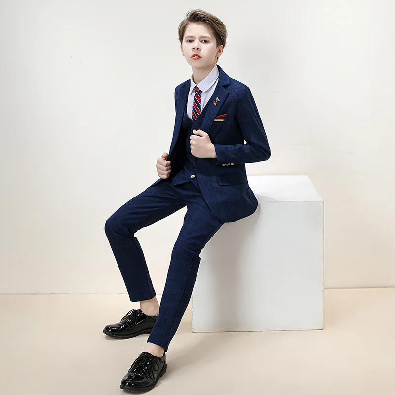 Flower Boys 4Pieces/Set Jacket Vest Pants Bowtie Costume Teenager KIDS Weddings Party Graduation Suit Children Tuxedo Dress