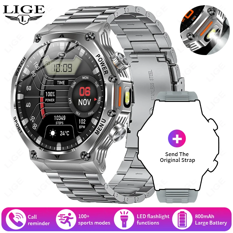 LIGE Smart Watch Man LED Flashlight 1.8inch Men’s Outdoor Sports Fitness Tracker 800mah Large Battery BT Calling Smartwatch 2025